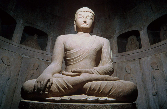 Crédits) Bouddha Shakyamuni de la grotte Seokguram (aut : ville de Gyeongju) Il s’agit d’un temple de grotte construit dans le mont Toham de Gyeongju. La grotte Seokguram montrant la foi et les techniques de construction du haut niveau des gens de l’époque Silla, elle a été classée au patrimoine culturel de l’Unesco avec le temple Bulguksa. La statue de Bouddha ‘Shakyamuni’ dans la grotte et les sculptures situées aux alentours permettent d’admirer les tehcniques raffinées et subtiles utilisées à l’époque.