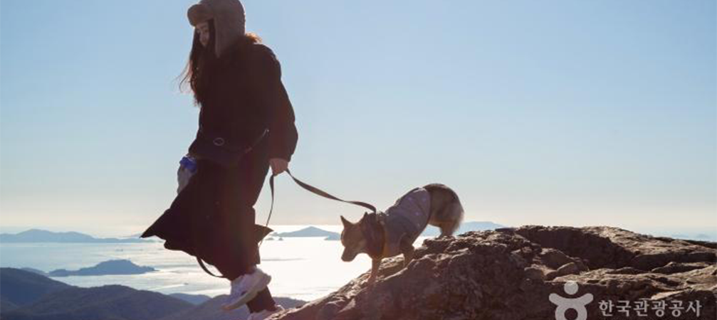 En seulement 15 minutes à pied depuis la station supérieure du téléphérique de Tongyeong, vous atteindrez le sommet du Mont Mireuksan. Le Mont Mireuksan est un volcan qui a éclaté pendant la période du Crétacé, il y a 120 millions d'années. Le sentier de randonnée est équipé de plateformes et d'escaliers en bois, ce qui permet aux chiens de monter facilement.